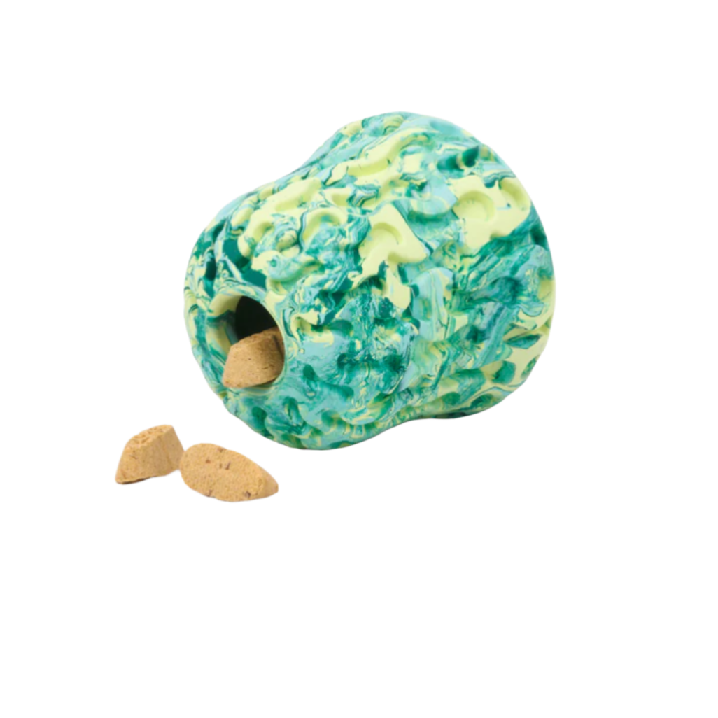 Keep your pup engaged with a puzzle toy built for fetching, treating, and interactive play. Inspired by the whimsy of nature, the colorful Morel™ Toy holds large biscuits and peanut butter in its easy-to-clean internal chamber, while its textured exterior is perfect for smearing lickable treats like pumpkin (or more peanut butter!). The durable, chew-resistant construction is built for moderate chewers.