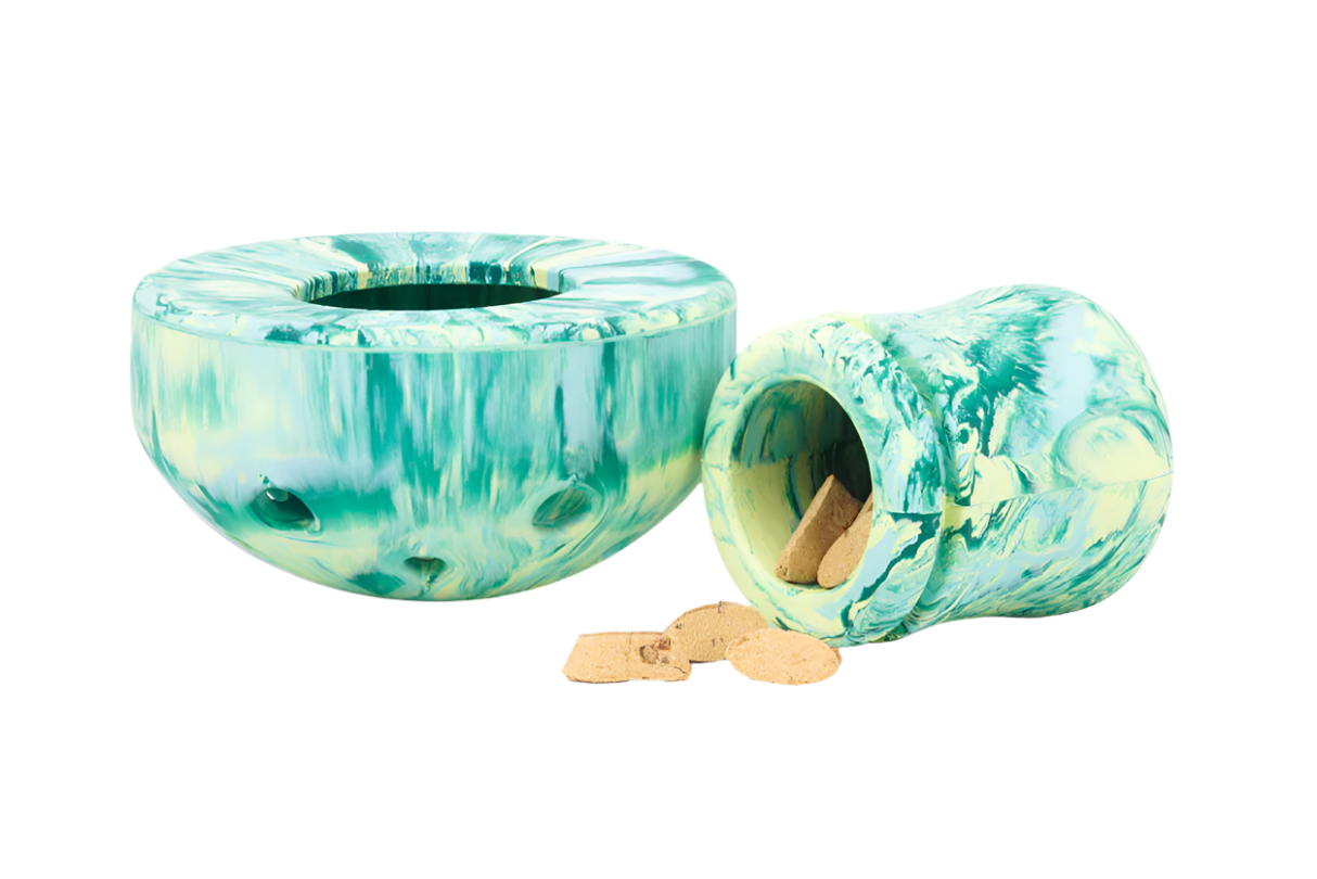 Looking for an enrichment toy and slow-feeder in one? Meet the Porcini™ Toy — a durable, chew-resistant dog toy inspired by nature. This colorful toy is built for slow feeding and mental enrichment — just pull apart the two-piece cap and stem and stuff the easy-to-clean internal chamber with your dog's favorite treats or an entire meal. Despite its large size, dogs of all sizes can benefit from this interactive toy and its slow-feeder benefits.